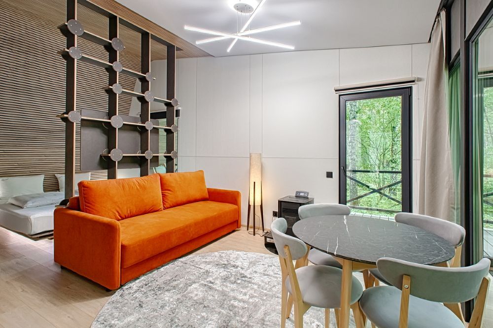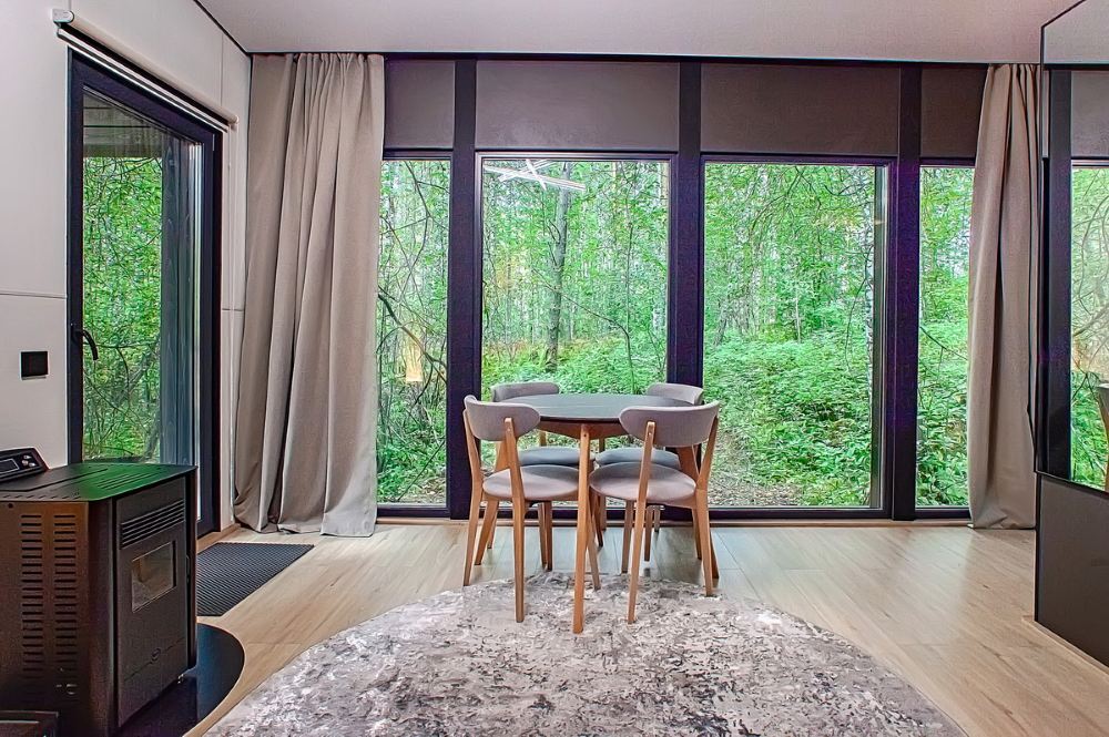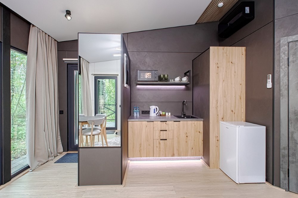 🤩Дом рассчитан на проживание до 4-х человек. Внутри – полностью оборудованная кухня, двуспальная кровать с подсветкой, создающей «парящий эффект», раскладной диван и телевизор. Санузел оснащен современной душевой кабиной.
