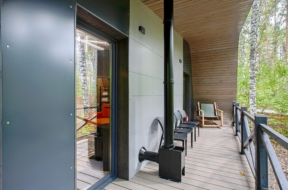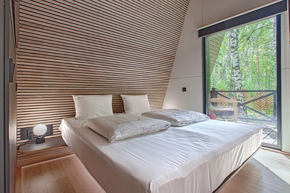 🌲В парк-отеле «Хвоя» появился новый формат отдыха – дом «Волна» площадью 30 м², расположенный среди леса. 60% стен здесь занимают окна: панорамное остекление наполняет интерьер светом и создает ощущение единства с природой.